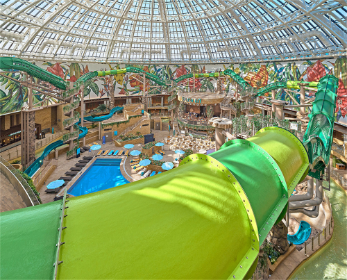 玻璃穹顶将灼热隔绝于外,倾泻而下的阳光在碧蓝水波间碎成温柔的呢喃。您可以悠闲地在“漂流河”中随波逐流,或是在“水中竞速” 360 度滑梯和“水舞旋转” 的蜿蜒长管中感受惊心动魄的刺激感。孩子们则可在专属的"水上王国" 和 “儿童转转乐”旋转滑梯中乐此不疲地嬉戏。